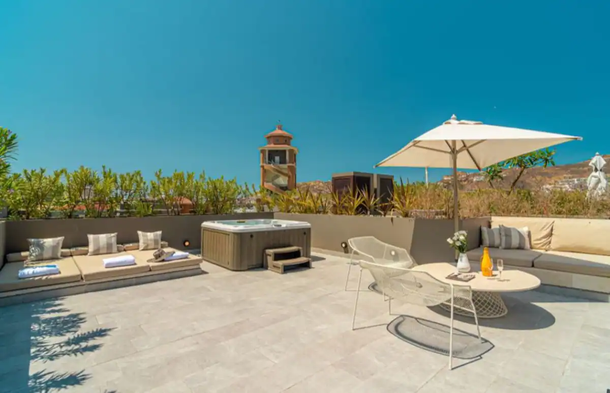 Unbeatable location! Located at Cabo Marina, walking distance to main restaurants, stores, bars, nightclubs, and Medano beach. Security 24/7. Enjoy a perfect getaway in this modern accommodation! Two bedrooms, two bathrooms, private terrace, rooftop, jacuzzi & grill. Common amenities like a gym with ocean view. You can´t miss it!